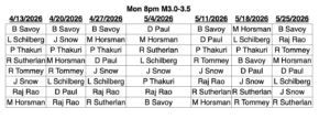 Men's 3.0-3.5 Monday 8:00pm