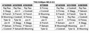 Men's 3.0-3.5 Thursday 8:00pm